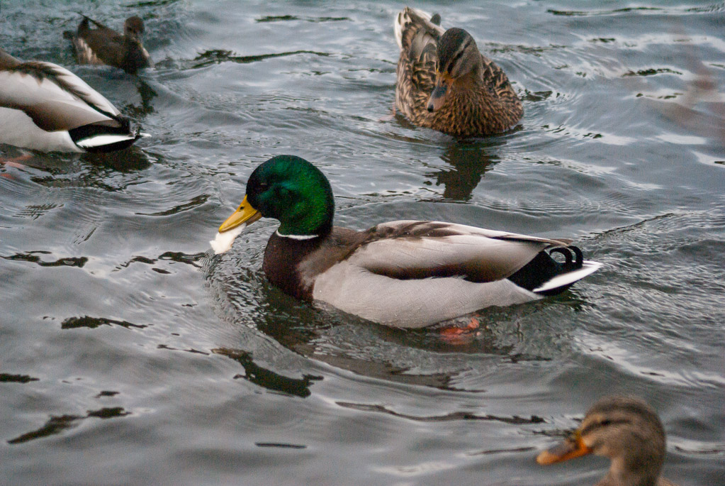 Ducks in the local pond being fed by my little sister.